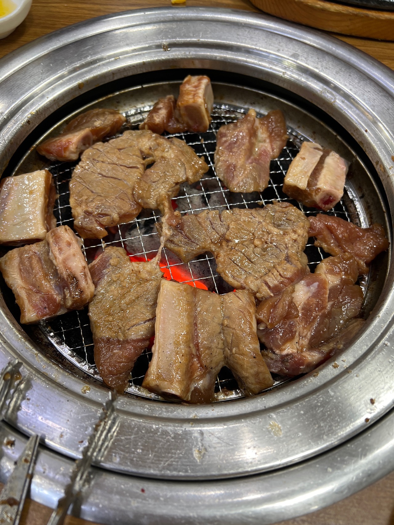 갈비가 양도 많고 맛있어요! 사진에 있는 양이 3인분이구 불판에 있는 양은 뼈 제외한 2인분입니당