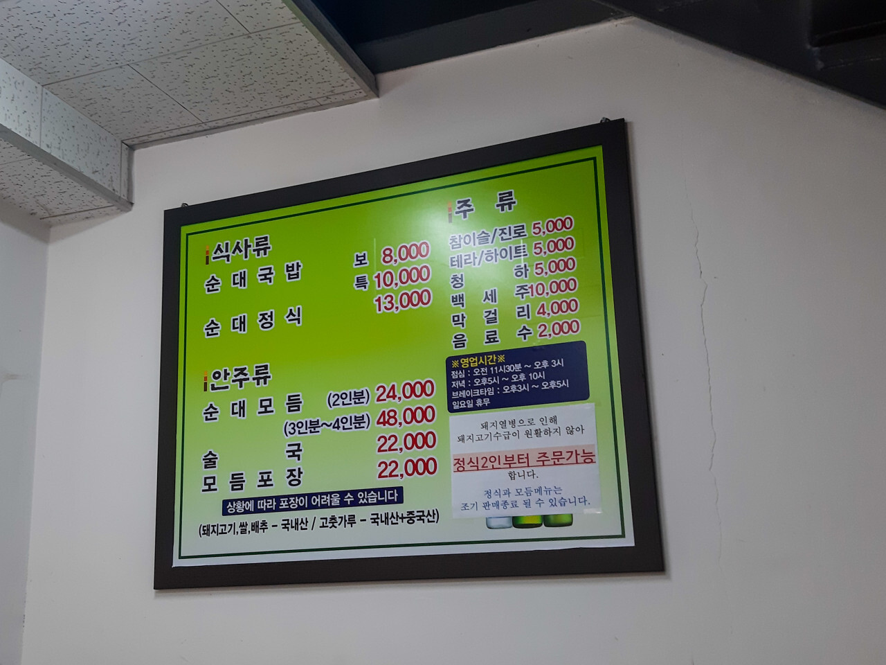 차림표를 보니 순대국밥 (보통), 순대국밥 (특), 순대정식, 순대모듬2인분, 술국, 모듬포장, 순대모듬3~4인분 등이 있네요.아래에 가게 위치가 나와 있습니다 !!
