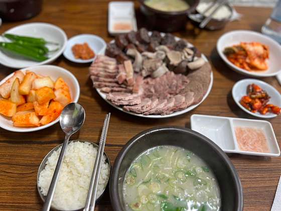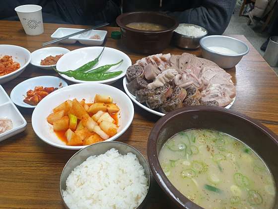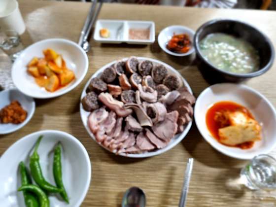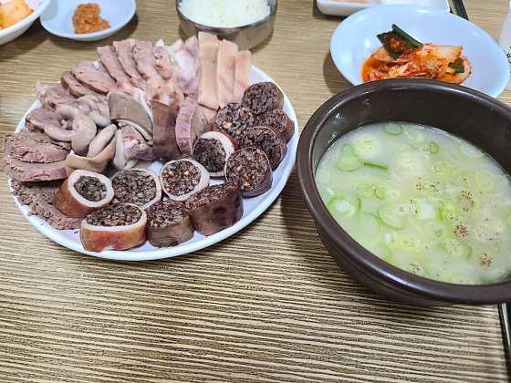 주말 8시 되기 전 국밥만 가능하다고 하셨는데 다행히 순대 반접시 가능하다고 하셔서 주문했습니다 순대도 쫄깃하고 친절하셔서 좋았습니다 맛있게 먹었어요 바쁜데도 친절하세요