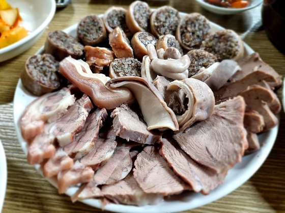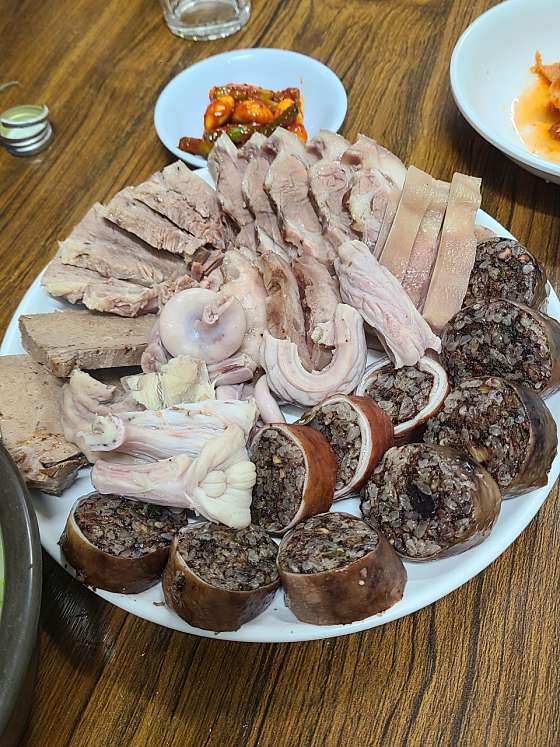 맛집 프로그램과 유튜브에서 자주 노출된 곳이라 몆번 방문했는데 그때마다 웨이팅이 길어서 못먹었는데 이번에 먹었네요. 대표 메뉴인 순대모듬과 막걸리 주문했습니다. 서비스로 나온 순대 국물도 좋았고 모듬에 포함된 내장과 순대 모두 맛있었고 특히 암뽕이 식감도 좋고 이색적이라 좋았습니다.