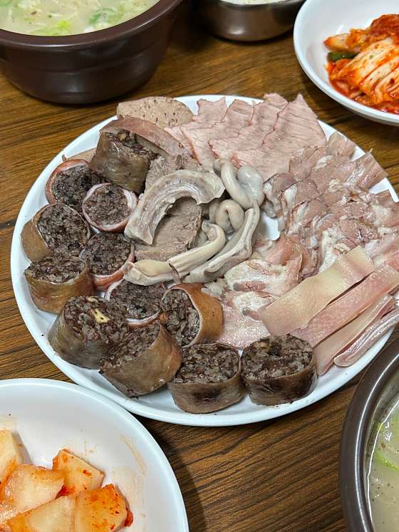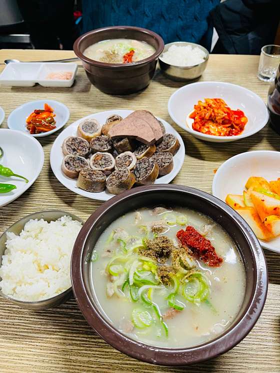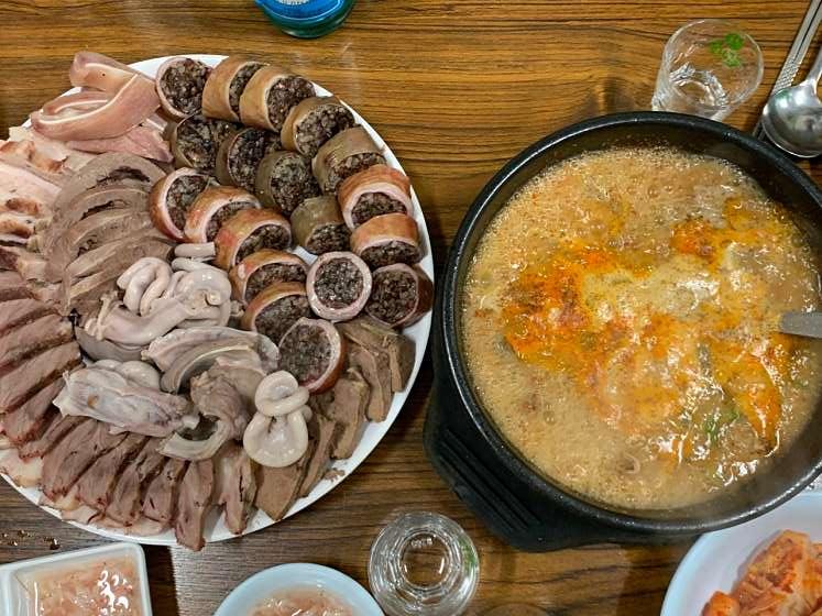 언니들이 인정맛집이라고 해서 따라가봤습니다! 유투브에 많이 나온다는 남편말은 나중에 들었어요 굉장히 부드럽고 촉촉하게 나와요 점심 먹으러 간던데 주변 테이블 꽉 차있고, 무엇보다도 쐬주와 함께 하시는 할아버지들이 많으셨어요 저는 내장은 즐기지 않지만 먹어보니 아주 고기들이 부드러워요 순대도 맛나고요! 나오는 국에 넣어서 밥이랑 떠 먹었어요 좁고 협소하지만 또 추운 겨울에 오기 좋은 곳었어요! 주차는 안됩니다 ㅎㅎㅎ 잘 먹고 갑니다!