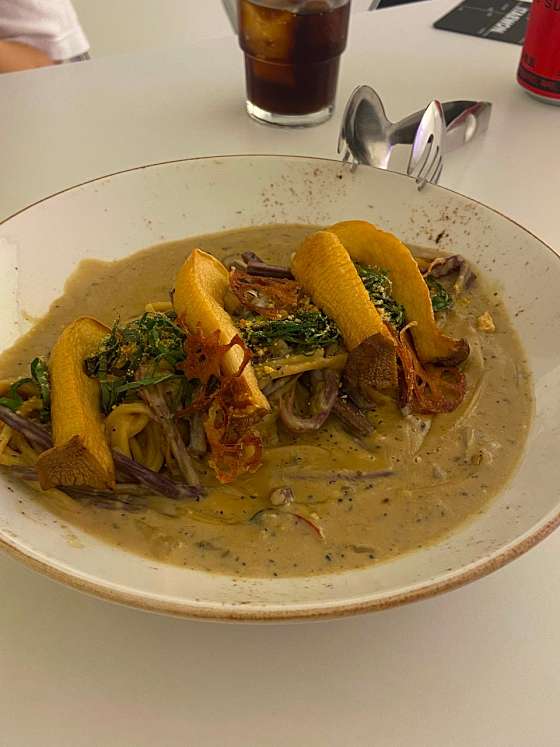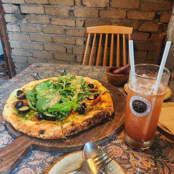 비건은 아니지만 버섯과 토마토를 좋아해서 가보게 되었습니다ㅎㅎ 소스랑 재료 뭐 하나 튀는 것 없이 잘 어울리고, 부드럽고 고소해요. 사진 메뉴에 간단한 재료 소개도 있어 보기 편했지만 다 맛있어보여서 메뉴 고르는 게 쉽지 않았습니다ㅎㅎ 파스타 속 구운 버섯이 진짜 미쳤네요. 피자는 작은 사이즈 생각했는데 생각보다 커서 놀랐어요ㅋㅋ 도우가 엄청 쫄깃하고 재료 본연의 맛을 최대로 끌어올린 듯한 느낌이었어요. 비건식의 건강과 맛있음이 공존가능한 메뉴 장소도 깨끗하고 우거진 숲속 음식점 느낌이라 멋집니다. 바로 옆 카페도 비건식에 인테리어가 예뻐서 먹고 놀기 좋아요! 강추..