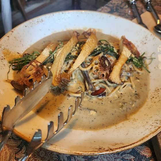 초록초록한 분위기가 고급스러우면서도 싱그럽고 독특해서 건강한 느낌을 살려 주고요. 데이트 하기에도 모임 하기에도 좋은 공간이 구석구석있어서 돌아보는 재미도 있어요 음식이 하나하나 다 정성 가득 맛있는데 건강할 것 같은 비건 레스토랑이에요 직원분도 정말 친절하셔서 더 좋은 시간 보냈습니다