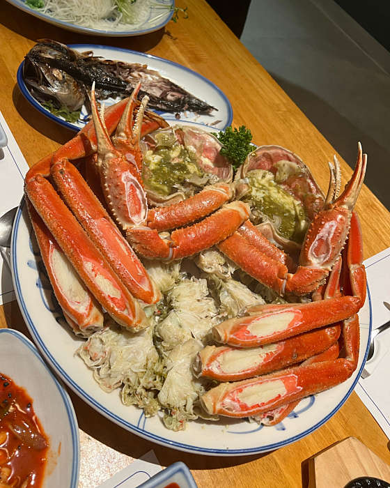 요즘 대게가 먹고싶어서 부모님이랑 방문했는데 정말 맛있었어요!! 대게 수율 100 !!!! 여태껏 먹어본 대게중에 가장 만족스러웠어요 사장님이 음식에 완전 자부심 있으시고 재방문 의사 300 입니다. 다음에 또 방문할거에요