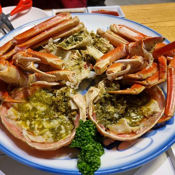 조금빠른 연말을 보내기 위해 예약한곳 다른곳은 브레이크타임이 많아서 시간대 약속 잡기가 곤란했는데 여기는 브레이크 타임도 없고 블러그도 많이 찾아 봤는데 정말 사장님도 친철하시고 킹크랩도 직접 가져다가보여주시고 와 대게랑 킹크랩살이 가득가득 맛또한 역시 맛있네요 사장님이 츤드레처럼 잘 챙겨주셔서 감동 칭구들도 만족하네요 맛도굿!! 모든 음식이 다 맛있네요ㅋㅋ 굿굿굿 엄지척