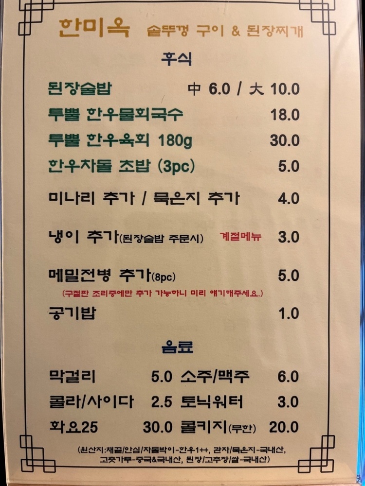 비싸긴 너무 비싸지만 한우니 어쩔수 없구 ㅠㅠ 맛은 좋아요! 그치만 ㅠ 청국장냄세인지 식당안에 고기 냄세가 아닌 청국장냄세가 진동을해서 ㅠ 옷에 청국장냄세로ㅠ범벅이ㅜ됬더라구용 ㅠㅠㅎ 그갓만 빼면 다 만족했어요 ㅎ